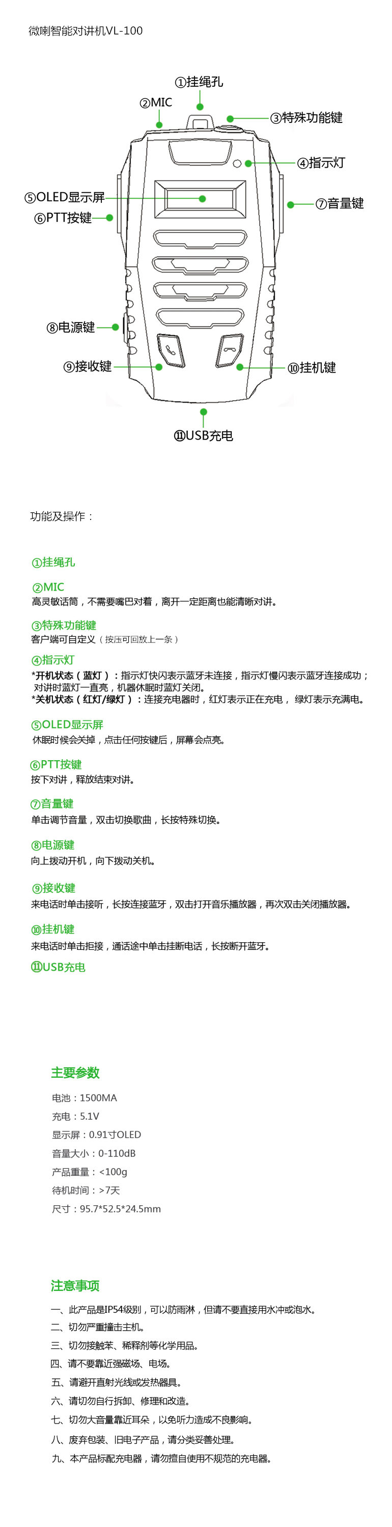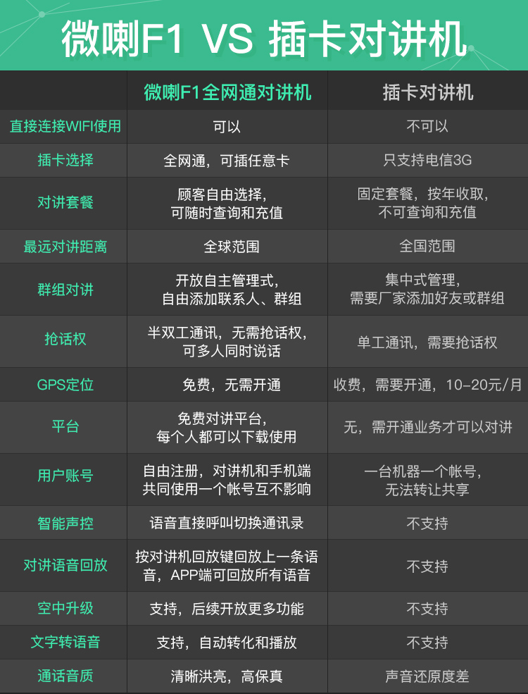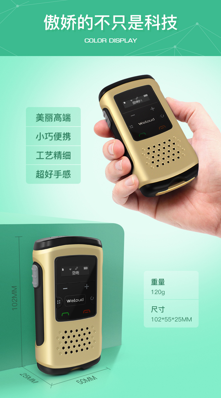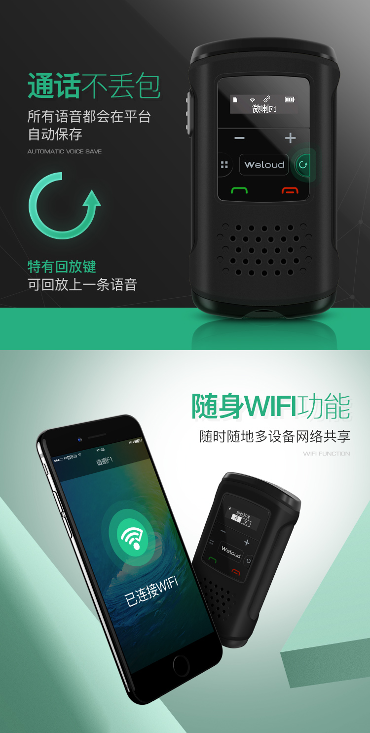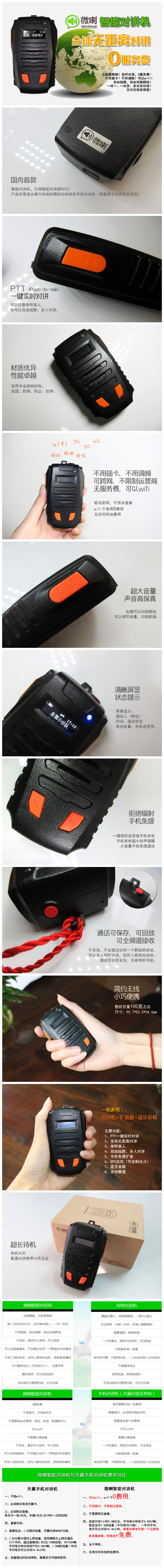 微喇是深圳市沃特实业有限公司自主研发、设计、生产的国内第一款智能蓝牙对讲终端,产品结合客户智能机APP端应用,形成一套无距离限制对讲系统,此系统拥有单对单对讲、多人对讲、自由组群、集群调度、团队沟通、GPS定位等功能,产品非常适合替代传统的模拟对讲机和手机对讲机,具有无距离限制、无服务费、不用调频、不用插卡、通话保存和回放、安全保密、精准定位等优点,广泛适用于企业集团管理、自驾游、 旅游管理、出租车、物流车队、户外活动、小团队沟通、政企客户等。